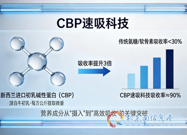 邦固力的核心優(yōu)勢(shì)在于其 “CBP速吸科技”。CBP作為一種珍稀成分(每萬(wàn)公斤牛初乳僅能提取少量),能將傳統(tǒng)氨糖與軟骨素不足30%的吸收利用率大幅提升至約90%,實(shí)現(xiàn)了從“被動(dòng)等吸收”到“主動(dòng)高效遞送”的跨越。