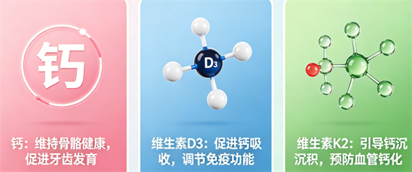 優先選三合一配方:鈣+D3+K2三者協同,效果比單一成分或二合一配方好很多