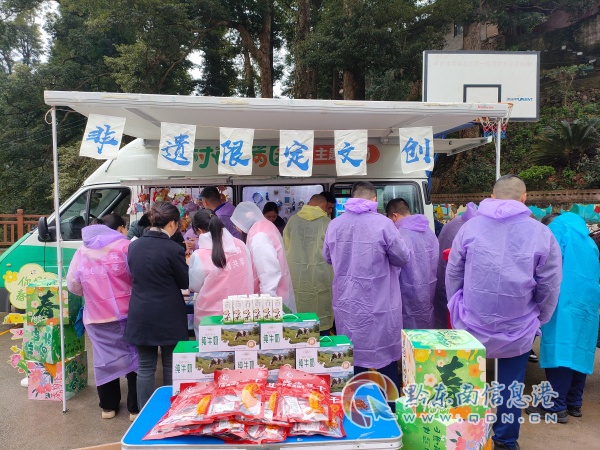 植樹活動后,由州郵政公司打造的“村色滿園”移動主題郵局前,早已人頭攢動、熱鬧非凡。郵局精心設置黔東南各地特產試吃區、特色明信片打印區、特色章戳加蓋區、文創產品展示區四大區域,全方位展現黔東南的生態特產與人文魅力,讓活動更具溫度與特色。