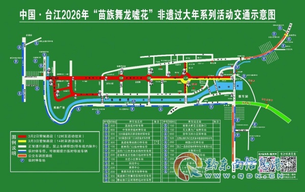 2026年3月1日至3月3日,中國·臺江2026年“苗族舞龍噓花”非遺過大年系列活動在我縣隆重舉行。屆時(shí)將吸引數(shù)以萬計(jì)的群眾前來觀看。本著“精心組織、周密安排、熱情服務(wù)、安全暢通”的原則,經(jīng)研究決定,活動期間將對城區(qū)部分道路分時(shí)、分段實(shí)施臨時(shí)交通管制措施,現(xiàn)將有關(guān)事宜通告如下: