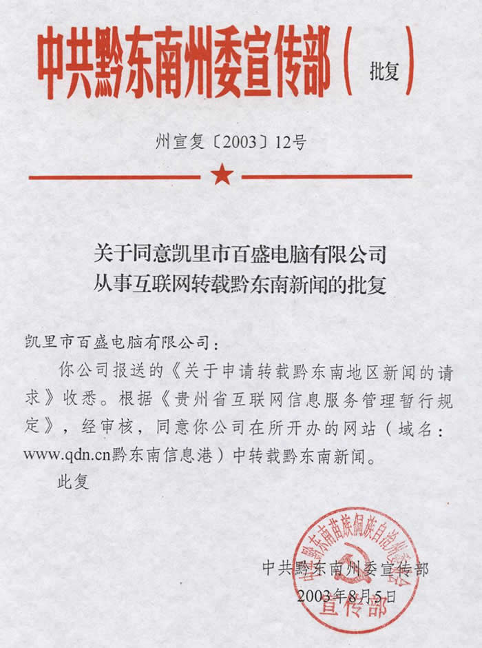 |黔東南新聞轉載批復