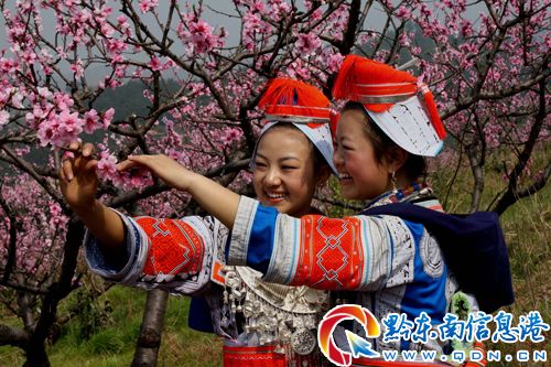 凱里市“雙學雙比”優質桃示范基地,革家少女在基地學習種植技術