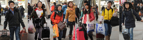 2013年1月17日,江蘇省南京市,學子們輕松踏上回家的路。秦淮 攝