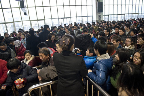 2013年1月17日,杭州各高校陸續有學生完成期末考試后,開始返程。1月17日至20日,杭州站迎來了節前學生乘車高峰,依據當前售票情況,4天全局發送學生客流將超過45萬人,日均運送學生客流逾11萬人。布他 攝