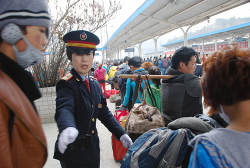 據(jù)貴州鐵路工作人員介紹,當(dāng)天,預(yù)計(jì)貴州鐵路管轄的20多個(gè)火車站共發(fā)往杭州和上海方向的農(nóng)民工達(dá)8.6萬(wàn)人次。為了應(yīng)對(duì)客流高峰,貴州鐵路增開(kāi)貴州往華東、華南臨時(shí)旅客列車達(dá)12列,圖定旅客列車16列.姜澤鵬