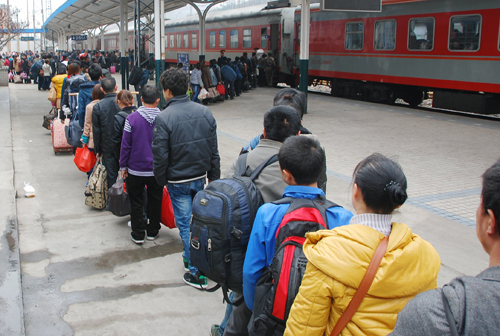 2月27日,成都鐵路局凱里車務(wù)段貴定火車站迎來(lái)了節(jié)后杭州和上海方向返程農(nóng)民工流最后高峰。