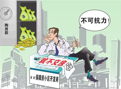 事由及處理結(jié)果: 2011年10月16日,岑鞏縣消費(fèi)者協(xié)會接到石某、唐某、何某等10余人的聯(lián)名書面投訴,稱他們于2009年10月與開發(fā)商凱里中意房地產(chǎn)有限責(zé)任公司簽訂購房合同,購買岑鞏縣第二農(nóng)貿(mào)市場商品房,并交付了房屋購置款,合同約定2010年12月31日交房。由于施工進(jìn)度緩慢,2011年7月22日才通知購房戶交房。但由于開發(fā)商未提供房屋驗(yàn)收合格證明,購房戶拒絕交房,并要求開發(fā)商賠償經(jīng)濟(jì)損失。他們多次找開發(fā)商要求提供房屋驗(yàn)收合格證明并按違約責(zé)任賠償損失,開發(fā)商以各種理由推脫,后來干脆置之不理。他們也找過住建部門請求解決,也未有結(jié)果。為此,他們現(xiàn)在投訴到工商部門和消協(xié)請求處理,并稱如果處理不好,他們將損毀房屋并集體上訪。