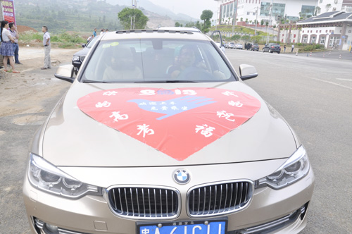 有一位市民羅先生,他也投身到志愿者行列,用自己的寶馬車接送考生,據了解,今早他送了三位考生分別到凱里一中、凱里附中、三中這三個考場,11點30分左右,他將給早上送去一中的考生送飯。