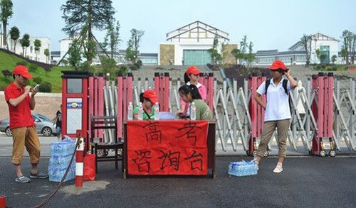 現(xiàn)場凱里市第一中學(xué)高一學(xué)生,趕到現(xiàn)場開設(shè)高考咨詢臺,更有凱里習(xí)酒自愿者,為現(xiàn)場的父母以及高考生們發(fā)放礦泉水。