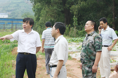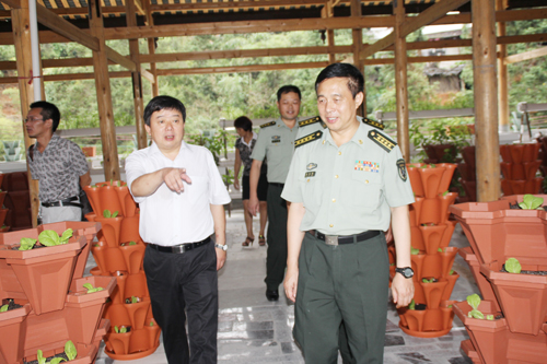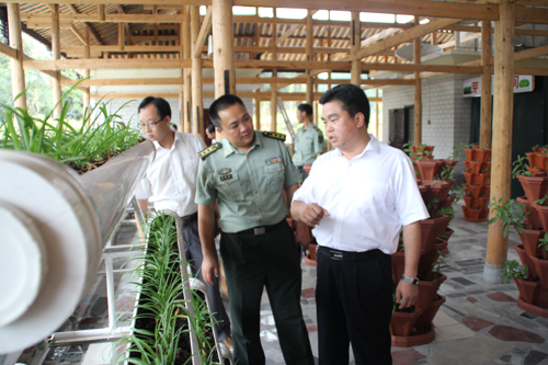 縣委書(shū)記、縣人武部黨委第一書(shū)記王之政察看民兵無(wú)土栽培示范點(diǎn)