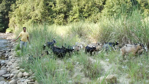 翠里鄉(xiāng)高文村民兵連長(zhǎng)潘顯召養(yǎng)殖山羊