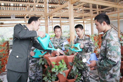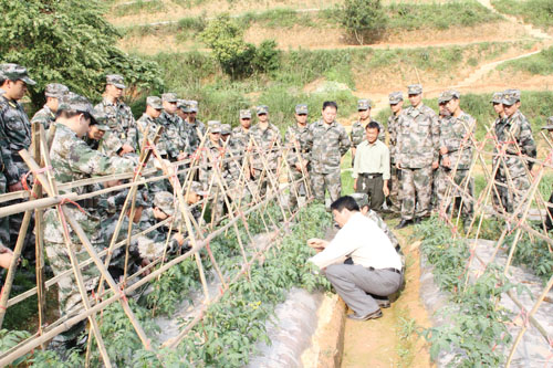 為發(fā)揚(yáng)優(yōu)良傳統(tǒng)和改變駐地群眾粗放低效種養(yǎng)模式,2009年,人武部黨委“一班人”帶領(lǐng)干部職工和民兵苦干5個月,在荒山坡上開挖出7畝蔬菜地,建起了民兵生態(tài)科技種植養(yǎng)殖示范基地;2012年5月,引進(jìn)山東壽光現(xiàn)代先進(jìn)種植技術(shù),新建了400平米的無土栽培示范點(diǎn),將先進(jìn)的種植技術(shù)引入少數(shù)民族貧困地,對廣大民兵和群眾傳統(tǒng)的種植方式、生活方式和思維方式產(chǎn)生積極影響,使綠色、生態(tài)、環(huán)保、低碳的可持續(xù)生產(chǎn)模式在從江這個國家級貧困縣起到積極的引領(lǐng)作用。3年來,人武部利用基地培訓(xùn)民兵致富帶頭人6000余名,帶動上萬群眾發(fā)展科技種養(yǎng),產(chǎn)生近億元的經(jīng)濟(jì)產(chǎn)值。人武部聘請農(nóng)技專家到人武部民兵種養(yǎng)殖示范基地為民兵傳授種養(yǎng)殖技術(shù),三年來,人武部共培訓(xùn)群眾30000余人次,帶動了2800戶群眾脫貧致富。
