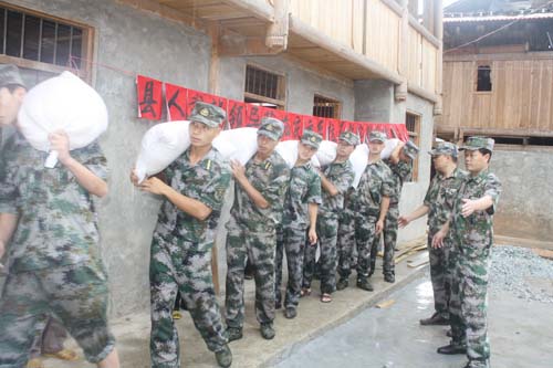 2011年人武部組織干部、職工和應急隊員發放抗旱糧
