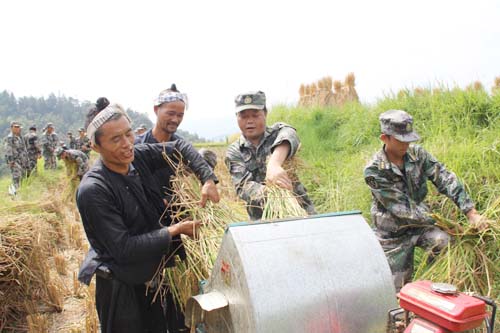 幫助群眾搶收稻谷