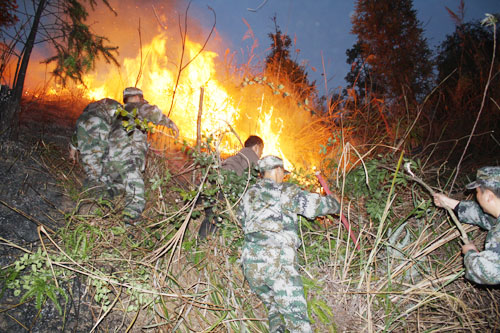 官兵奮力撲滅山火
