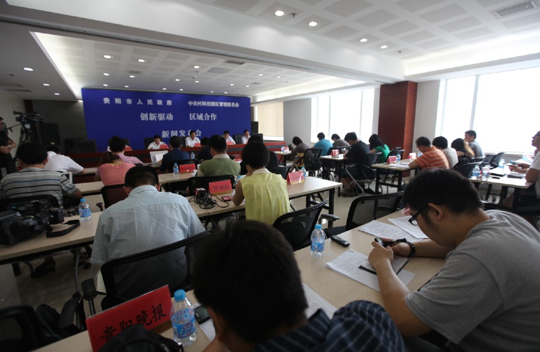 發布會上,貴陽市委常委、常務副市長劉文新主持新聞發布會,中關村科技園區管理委員會委員、新聞發言人劉航,貴陽市政府副市長劉玉海出席新聞發布會并介紹相關情況。新華社、人民日報、經濟日報、中央電視臺、北京電視臺、香港文匯報等33家境內外媒體參加了發布會,貴陽新聞網等網絡媒體全程進行現場圖文和微博直播。