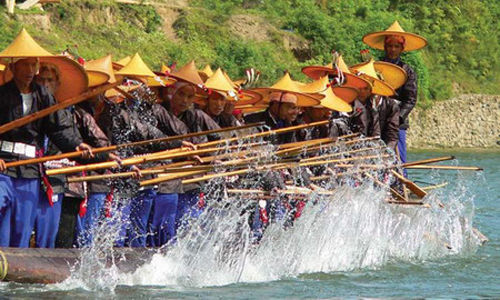 “龍船節”是黔東南清水江沿岸苗族人民重要的傳統娛樂和體育競技的節日。龍船節每年農歷五月二十四日從施秉的平寨開始,經塘龍、榕山到臺江施洞結束,歷時 4 天;顒觾热莩慅堉壑猓有苗族傳統的斗牛、賽馬、踩鼓、跳蘆笙、游方等。