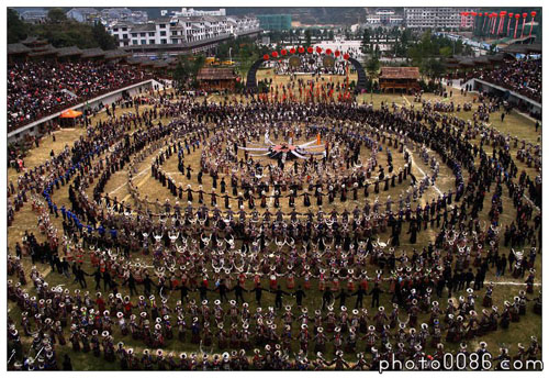 節日期間,老人們輪流宴請賓朋,青年們梳裝打扮,參加跳蘆笙、斗牛、賽馬、游方等活動。苗年規模較大的有雷山西江、臺江施洞和凱里掛丁等處,每處集會都有上萬人參加,集會的內容有跳蘆整、賽馬、斗牛、斗雀、游方、對歌等等,男女青年各自根據自己的愛好參加不同的活動。
