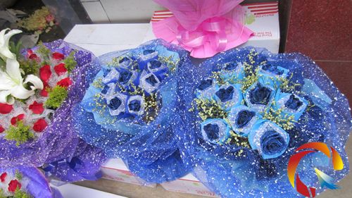 記者在另外一家花店看到,店內還有正在加工的“藍色妖姬”,該品種的玫瑰要15 元一支,一束包裝好的11朵的“藍色妖姬”能賣到228元。店長謝女士也說,今年的花價的確上漲了不少,預訂量也不比以前。記者提出情人節有沒有送上門服務,店主也表示,今年可能沒有以前忙了,市內的話到時候也考慮送貨,收費會是10—15元以內。