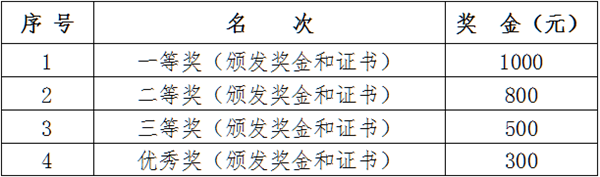 (二)大賽獎勵:為獲獎個人頒發獲獎證書及獎金。獎項及獎金分配如下: