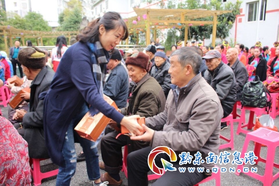 活動通過宣傳展示、節日慰問、文藝演出等形式讓福利院老人感受老年文化的豐富多彩,讓其身心愉悅。出席活動的領導對福利院老人送上了重陽節的祝福并送上為老人們定制的節日慰問紀念品保溫杯,讓老人歡樂溫暖的過節。文藝演出在舞蹈《吉祥西藏》中拉了開序幕,接著舞蹈《鎖千秋》《天竺少女》《洗衣舞》等精彩表演,隨后凱里十二小的師生帶來《三德歌》在這個傳統佳節重陽節來領之際給福利院的來人們送來他們的節日祝福;最后彩虹社工與福利院的老人帶來的歌曲串燒《萍聚》+《;丶铱纯础罚瑒忧榈难莩袆蝇F場的老人們和觀眾。彩虹社工與福利院老人結緣于2017年三區計劃項目,項目通過一年的開展,社工的服務得到了院內老年人的認可,老人與社工建立了深厚的感情,此次彩虹社工再次回到福利院陪伴老人一起過重陽節,并攜手院內老人一起合唱《;丶铱纯础繁磉_了社工對老人的思念和祝福,活動現場,老人們留下了激動的淚水,一位老人緊緊拉住社工的手說:“你們要經;貋砜纯次覀,常回家看看....”。