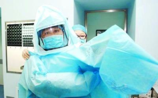 “來吧,開始吧。”11月29日早上不到8點,河南省傳染病醫院,普外科主任馮秀嶺大步流星進入手術室更衣間,給雙腳套上倆到膝蓋的腳套和雨靴。“看,這是我們的新設備。”護士拿出一個“頭盔”,上面還帶著小風扇一樣的東西。在護士的幫助下,身材高大的馮秀嶺順利給頭盔外面套上一次性面罩,又在身上套了一層手術衣。這已是第二層,里面的手術衣是消過毒的布制分體,外面的這層是不透氣的,一次性的。這一切準備,都是為了避免給患者做手術時,濺出的血液接觸面部皮膚和器官。戴上“太空帽”,穿著二層手術衣,馮秀嶺像個到達戰場的戰士,開啟了屬于他的“戰場”。不到一小時,雙側甲狀腺葉切除成功,他那緊鎖的眉頭舒展開來,臉上有了笑容。
