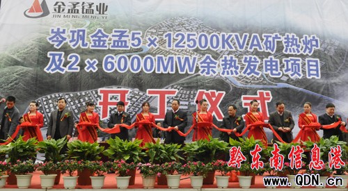 3月16日,岑鞏縣金孟錳業(yè)有限公司總投資14億元、二期工程5ⅹ12500KVA礦熱爐及2ⅹ6000MW余熱發(fā)電項(xiàng)目在該縣工業(yè)園區(qū)隆重開工。預(yù)計(jì)年底建成投產(chǎn)后,一、二期工程共可實(shí)現(xiàn)年產(chǎn)值20億、1100余人就業(yè)。