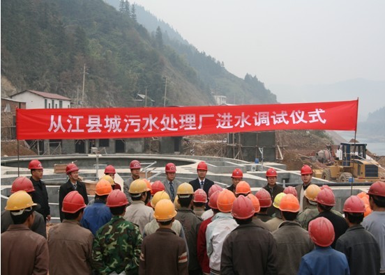 據從江縣政府辦消息 2009年12月31日上午9時,從江縣城污水處理廠按照工程進度要求如期舉行進水調試儀式,調試結果正常,取得成功。