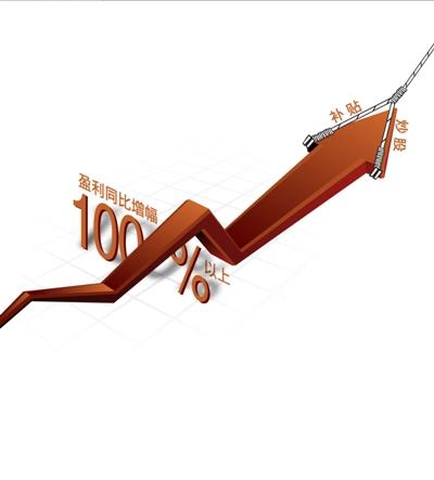 。猄T甘化因收到江門市國資委支付的扶持資金6000萬元,從而一舉扭虧為盈;海螺型材一季度取得補貼收入1492.6萬元,帶動業績同比大增;湖北金環由于一季度出售股票帶來投資收益,其公允價值變動收益為2050萬元,而上年同期該公司炒股虧損127萬元。
