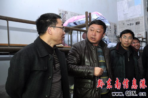 丹寨縣委副書記、縣長(zhǎng)侯美傳(左一)等在第三中學(xué)學(xué)生宿舍參觀