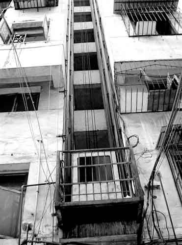 陳立雙:電停了,我就叫樓上的家人慢慢松剎車,用手拉動繩子,把電梯放下二樓或拉到9樓……然后人再慢慢從電梯箱里爬出來。