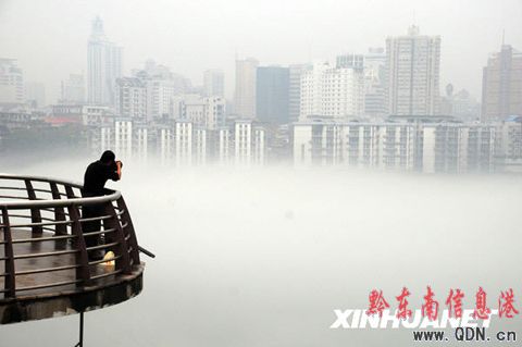 廣西柳州出現(xiàn)平流霧奇觀(圖)
