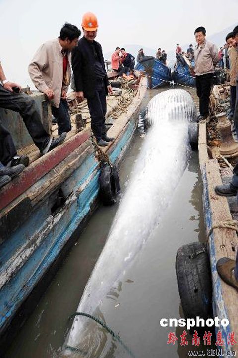 3月19日中午12時(shí),浙江省舟山市定海區(qū)金塘島瀝港漁業(yè)碼頭上人頭攢動(dòng),大家爭(zhēng)相觀看碼頭下的海面上浮著的一條無(wú)名大魚。這條“大魚”是漁民在灰鱉洋海域的大鵬島附近進(jìn)行捕魚作業(yè)時(shí)發(fā)現(xiàn)的,當(dāng)時(shí)這條魚已經(jīng)死亡并漂浮在海上,于是漁民便將其拖回了碼頭。后來(lái)該條大魚被一男子以1500元人民幣的價(jià)格買走。下午1時(shí)40分,這條大魚被拖到貨運(yùn)碼頭起吊,但起吊功率8噸的吊機(jī)無(wú)法將其吊起,只能換起吊功率15噸的吊機(jī)起吊。據(jù)悉,這條魚長(zhǎng)12米左右,直徑近1米,重在10噸以上。