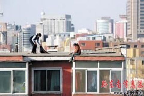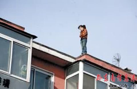 昨天13時許,一名年輕女子爬上長春市同志街與清華路交會處一棟樓頂,欲輕生。消防戰士和派出所民警一直勸說,她始終不肯下樓。