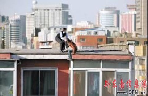 關鍵時刻,隱藏在一旁的兩名男警察迅速跑了過去,把兩人死死拽住,將兩人拉到了樓頂。圍觀人群中爆發出了熱烈的掌聲。“這女警察!好樣的!”