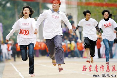 “拿到情侶對戒就現場求婚” 情侶比賽中,選手崔壯和其女友緊握雙手。崔壯大曬甜蜜經:“我們拍拖五年了,如果贏得比賽,拿到情侶對戒,我就現場求婚!”“哇!”在一片周圍的驚訝聲中,崔壯牽著女友的手走上賽道。深呼吸后,裁判槍響,他與女友手牽手狂奔,速度飛快。