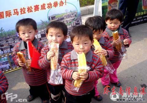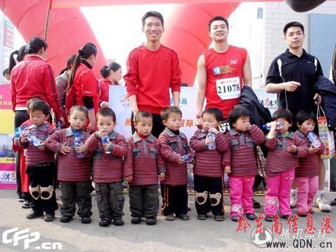 可愛“九胞胎”傾情助陣萬人馬拉松賽(圖)