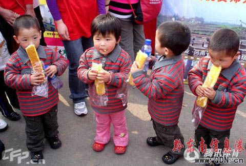 2009年4月5日,河南省開封市鄭汴大道,一家教育機(jī)構(gòu)打出“九胞胎”祝河南萬人馬拉松成功舉辦的條幅。經(jīng)了解,原來是一個五胞胎和四胞胎的組合聚會。他們現(xiàn)在在鄭州一家教育機(jī)構(gòu)免費(fèi)培養(yǎng)教育,現(xiàn)在3歲了。其中五胞胎是開封淇縣人,父親姓劉,他們五個取名為“北京歡迎你”,分別叫貝貝、京京、歡歡、迎迎、妮妮。四胞胎是河南周口人,父親姓王,分別取名為家恒、家龍、家祥、家奇。