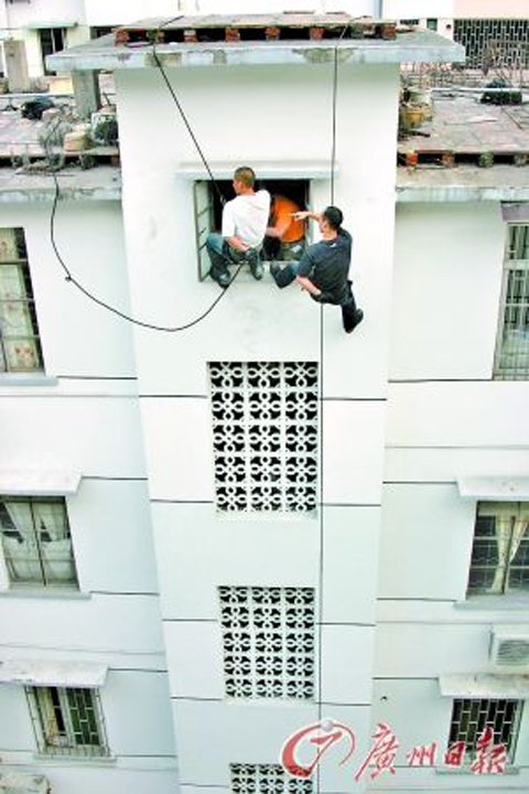 吸毒男子要跳樓 被特警從天而降救下(圖)