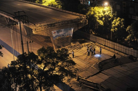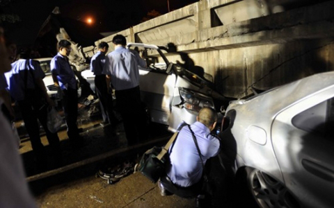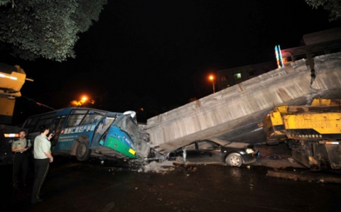 湖南株洲市區(qū)高架橋坍塌砸中22輛車(組圖)
