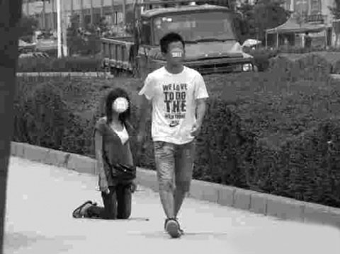 為了求得男友的諒解,西安一女大學生竟然當街向男友跪下,可男友仍無動于衷,揚長而去。近日,一條名為《實拍西安外國語大學女生為愛而下跪》的帖子被各大論壇廣為轉載,帖子中這一女生的行為引起了眾多網(wǎng)友議論,“都說男兒膝下有黃金,可是看到這一幕真的讓人無語,這是愛情的表現(xiàn)嗎?女兒膝下也有黃金啊”。