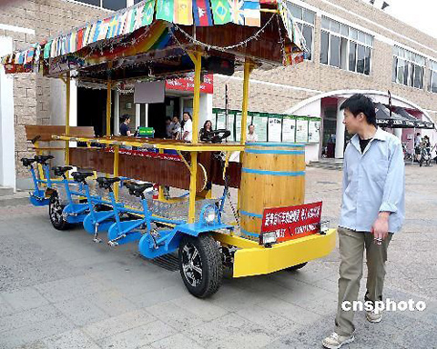 5月29日,一輛“新奇自行車”在北京朝陽(yáng)公園亮相,吸引了過(guò)往游客的目光。據(jù)工作人員介紹,這輛“超級(jí)”自行車能同時(shí)供14人騎行乘坐,在全亞洲堪稱第一,特別適合團(tuán)體游客觀光休閑之用。