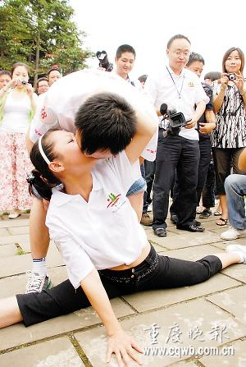 7月4日,相戀兩年的他們到四川廣安華鎣山旅游,闖入一場接吻比賽決賽,并在500多名游客面前展示了長達28分鐘的熱吻。