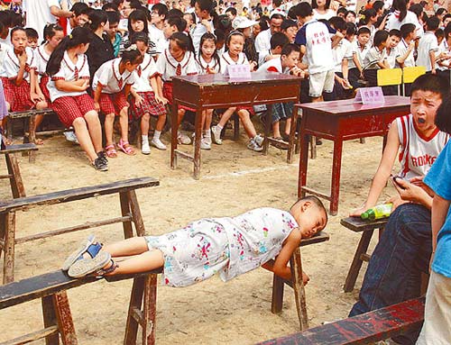 7月30日,等待3個小時的小學生困意濃濃。