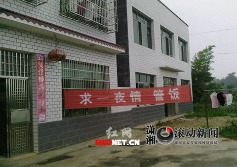 紅網長沙8月11日訊 “太前衛,太雷人了!”10日凌晨,益陽網友“偉陀”在紅網論壇發帖,說他近日去長沙辦事,在金洲大道一飯店吃飯,猛然見到一個紅底白字的橫幅,上寫“求一夜情管飯”,如此廣告語著實“夠猛”,于是他拍照后傳到了網上。