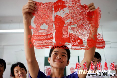臨近教師節,安徽省淮北市特殊教育學校的孩子們用靈巧的小手創作出各種剪紙作品,為老師獻上節日的祝福。 新華社發(王文 攝)