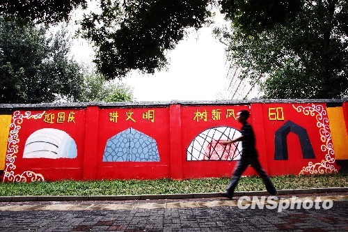 “國慶文化墻”涂鴉現(xiàn)身北京(圖)