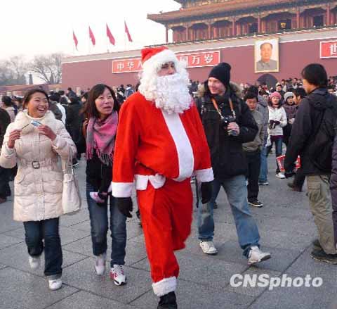 “圣誕老人”游天安門廣場成“明星”(圖)
