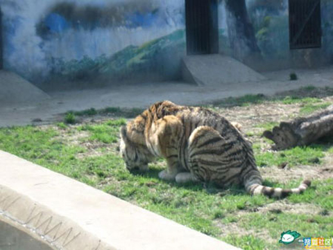 網(wǎng)友拍到老虎埋頭吃草 飼養(yǎng)員稱發(fā)情所致(圖)