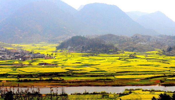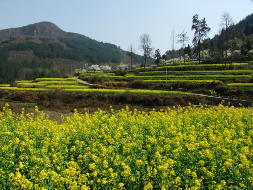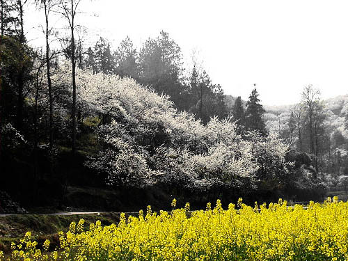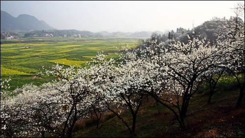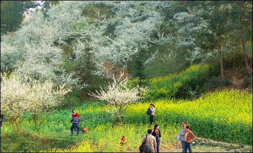 年年花相似,歲歲人不同。今年三月,貴定音寨又迎來李花和油菜花盛開的季節。萬畝李花盛開,仿佛漫山飛雪;滿壩油菜花齊放,猶如一片金海,萬畝油菜花與滿山遍野的李花構成的“金海雪山”奇景,與濃郁的布依族、苗族風情交相輝映,形成了全國僅有的獨特景觀。